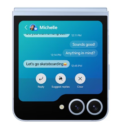 삼성스마트폰은 온디바이스AI라고 해서 모든 기기에 AI기능이 탑재되어 있어요. 이번 Z플립에서도 마찬가지인데요. Z플립은 화면이 두개고 하나는 사용자 하나는 앞을 볼 수 있죠.