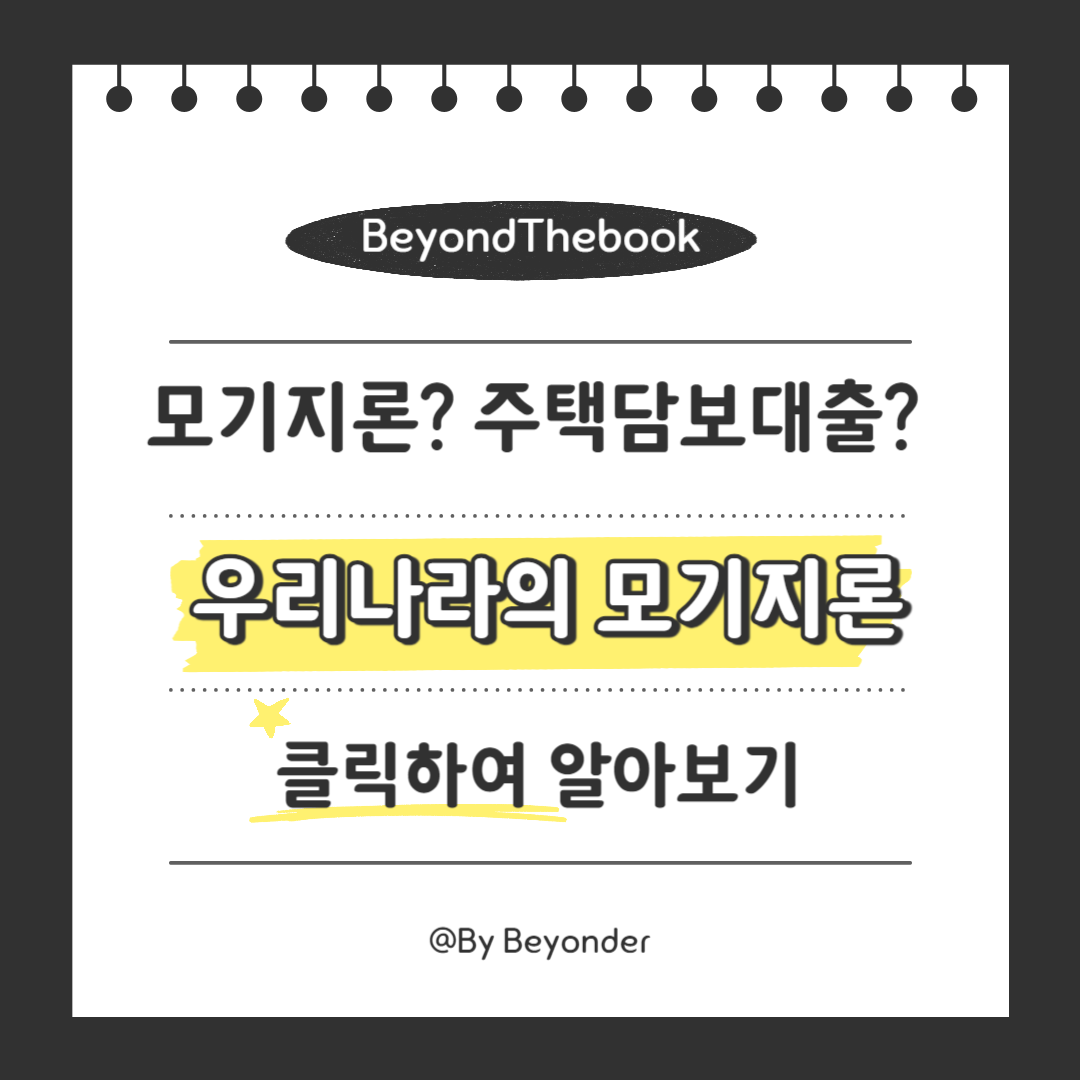이번 글에서는 모기지론의 정확한 뜻과 주택담보대출과의 공통점 및 차이점, 그리고 우리나라에 있는 대표적인 모기지론까지 살펴보도록 하겠습니다.