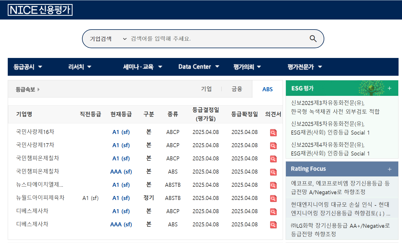 NICE 신용평가에서는 개인의 신용점수뿐만 아니라 기업의 신용등급도 산정하고 있는데요. 기업의 신용등급 리포트 및 평가자료를 열람할 수 있도록 하고 있습니다.